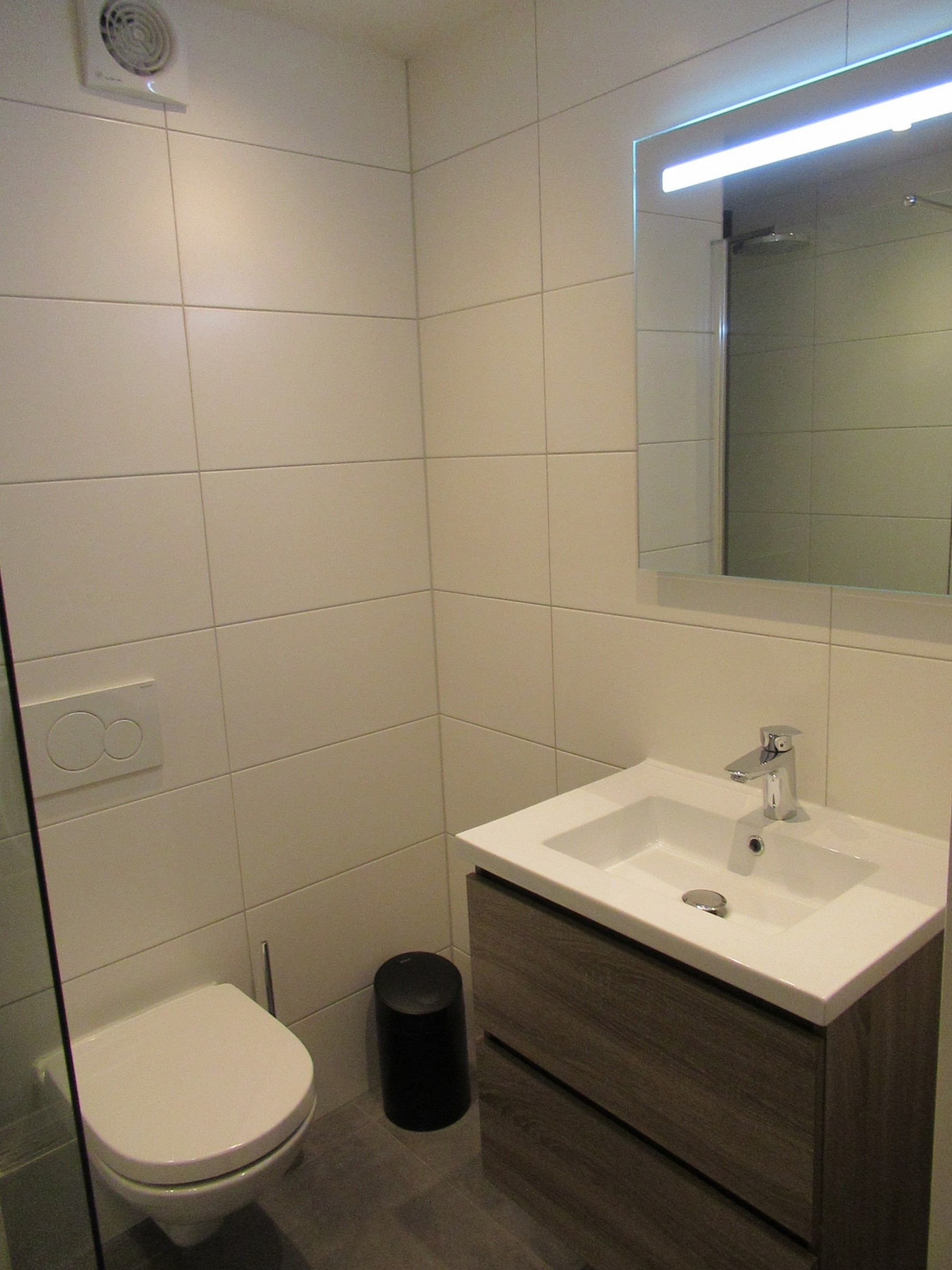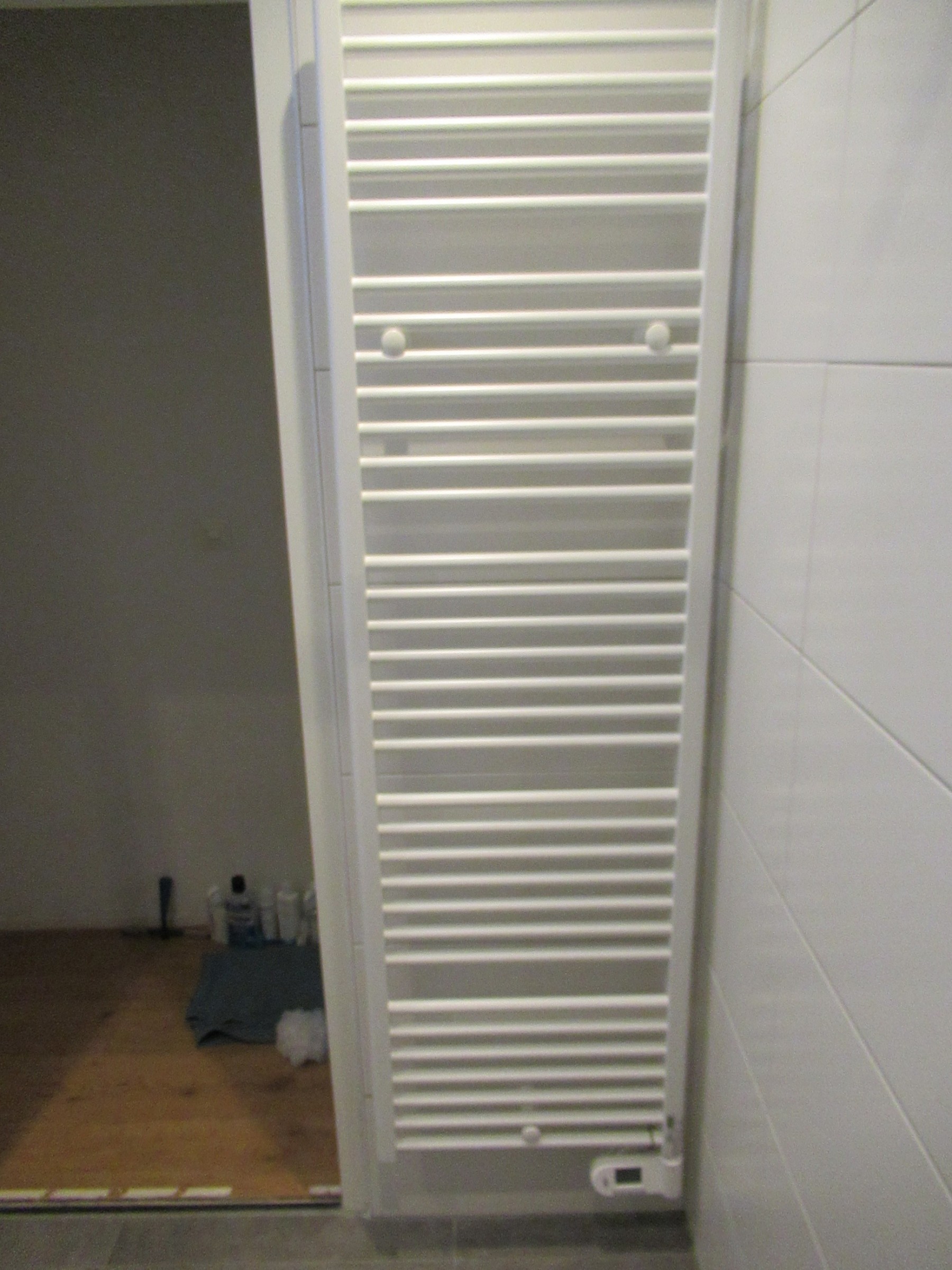 Aangezien er in de toekomst zonnepanelen gingen komen is er gekozen voor een electrische radiator ipv de conventionele radiator. Het badmeubel is bewust wat kleiner geworden en conform wens klant met spiegel uitgewerkt ipv spiegelkast.