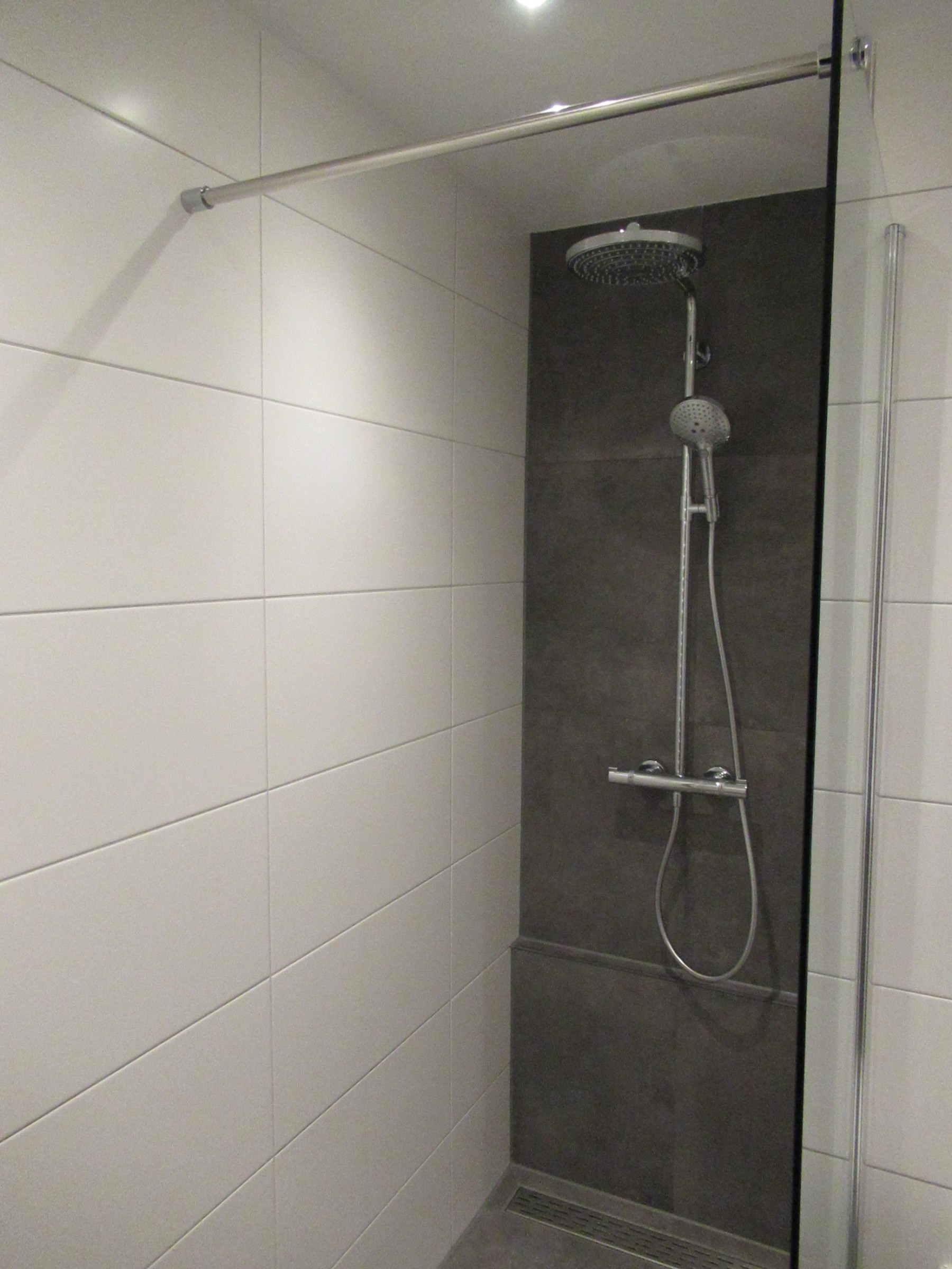 Aangezien de badkamer niet heel groot was moest er een keuze gemaakt worden: Een nieuw bad met als consequentie douchen in bad of een grote inloopdouche zonder bad. Na lang wikken en wegen is er toch gekozen voor een ruime douche. De reden hiervoor was vooral dat het bad er altijd voor de kinderen was en naarmate deze ouder worden ze bijna alleen nog maar douchen in bad.