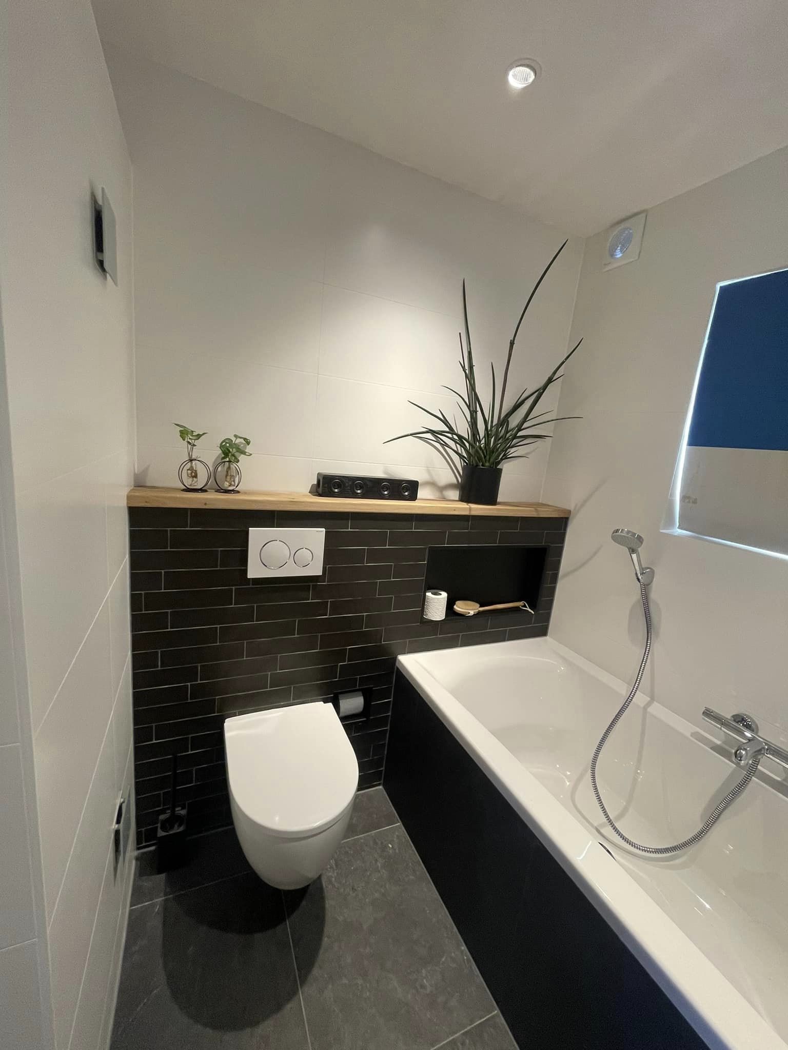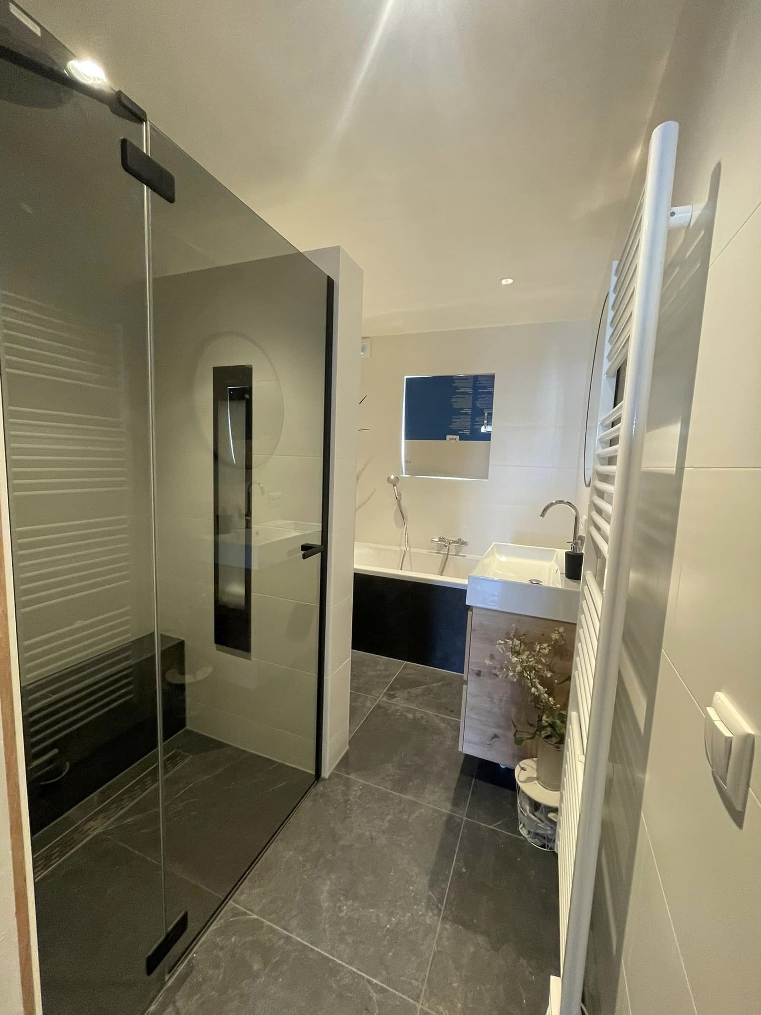 Deze eigenaren in Valkenswaard benutten hun bestaande ruimte erg goed. Ze wilden graag een bad en een douche met sunshower. De sunshower met UV-stralingen en infraroodfunctie zorgen voor positieve energie en extra stimulatie in je bloedsomloop. Ervaar het welness-gevoel in je eigen badkamer, wat zorgt voor dat extra beetje luxe.